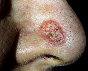 Язвенное образование медленно увеличивается как по периметру, так и внутрь, затрагивая участки здоровой кожи. Опухоль на лице может повредить веко, разрушить его, проникнуть в глазное яблоко и затронуть кость. Базалиома, расположенная на носу, может разрушить хрящи и кости, оставляя после себя значительные дефекты.