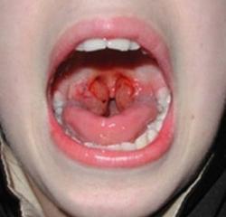 - отек слизистой оболочки ротоглотки, часто сопровождающийся отеком подчелюстной области