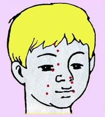 - Точечный массаж – найдите у ребенка такие места как: внутренний угол брови, внутреннюю нижнюю часть глазницы, центральную точку между бровей, среднюю точку по носогубной складке и массируйте их на протяжении 30 секунд по часовой стрелке, прикосновения могут быть болезненные.