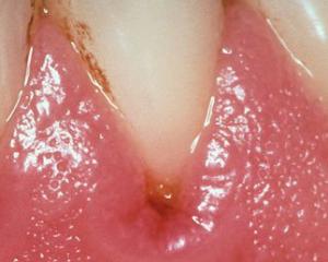 Десны приобретают синюшный оттенок, кровоточат во время еды, чистки зубов или при стоматологическом осмотре, формируются глубокие десневые карманы, при язвенном гингивите видны очаги деструкции, а слизистая приобретает серый оттенок.