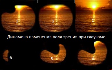 - Постепенное ухудшение поля зрения (потеря периферического зрения), в результате чего некоторые участки общей картины как бы исчезают.