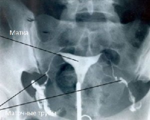 - визуализация маточных труб, при этом может наблюдаться их ампулообразное расширение без контраста в малом тазу, что указывает на полную непроходимость.