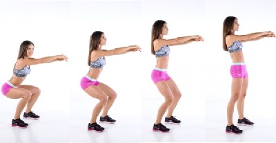 - 2) Полуприсесть, вытянув выпрямленные руки вперед. Фиксировать положение минуту.