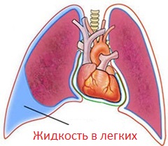 - сердечно-сосудистую недостаточность, вызванную сдавлением сердца и аорты экссудатом;