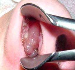 - 1) Полипотомия – механическое удаление полипов с помощью специального медицинского инструмента – крючка Ланге, напоминающего по внешнему виду петлю. Операция проводится после введения в область полипа раствора анестетика. Согласно статистике рецидив заболевания после данного вмешательства встречается у каждого второго пациента;