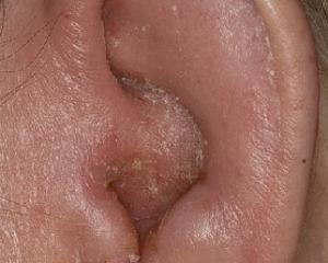 - отечность наружного слухового прохода, увеличенные лимфоузлы за ухом.