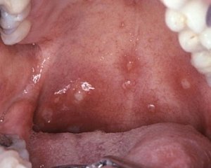 Также больного беспокоит запах изо рта, излишнее слюноотделение, кровоточивость десен. У многих больных, особенно у детей, повышается температура до 38-39 градусов, увеличиваются шейные лимфоузлы. В основном язвочки находятся с внутренней стороны губ, на мягком небе и на миндалинах, а также под языком. Во время болезни употреблении пищи приносит боль и дискомфорт.