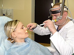 - Фонофорез с гидрокортизоном. Врач с помощью специальной палочки с пуговкой на конце обрабатывает слизистую носа. Ультразвук способствует улучшению кровообращения.